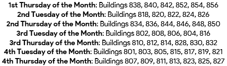 Monthly Pest inspection and pesticide application is MANDATORY. A pest control specialist will knock and announce his presence but if there is no timely answer, he will enter. If the Pest Control Technician is unable to gain access to your apartment or is otherwise unable to complete service a $100.00 rescheduling fee will be assessed.